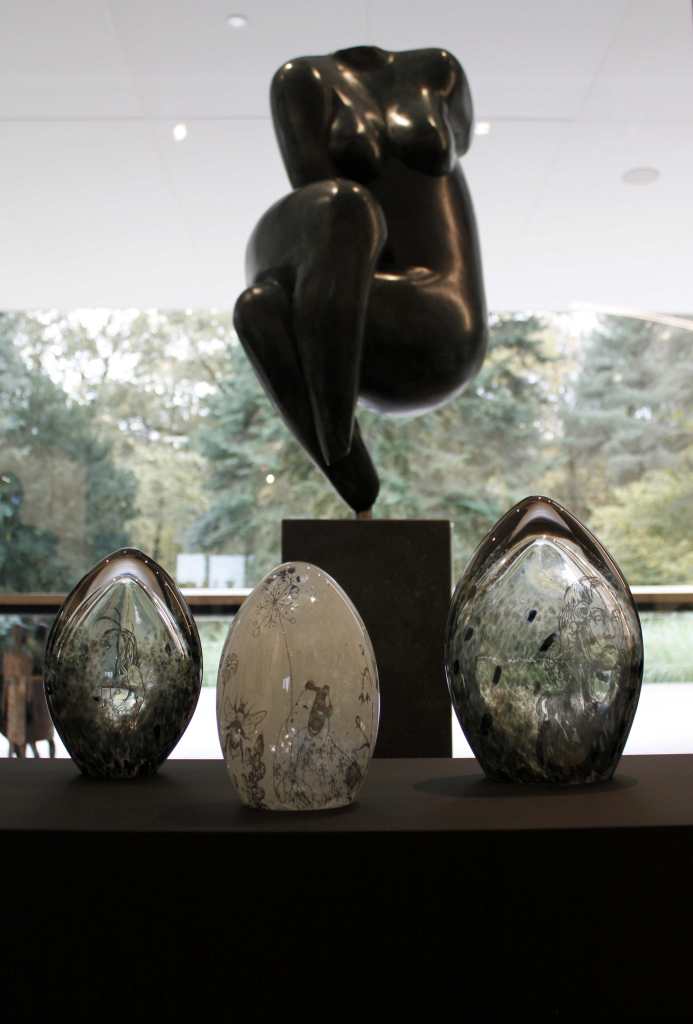 Exhibition of new Finnish glass is now open in Netherlends! Me and my colleague Elina Salonen traveled to Low countries a week back, to set up the exhibition and attend in the opening at beautiful Art Gallery Rozendaal. The gallery is located in Montfort, Limburg, in southern corner of Netherlands, near both Belgian and German border. I was very impressed of the modern gallery building with views to the surrounding woods – our glass art fits here perfectly!